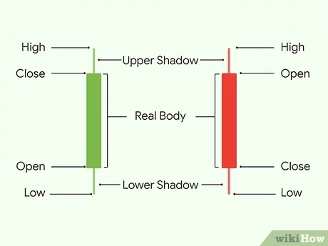 هر سایه نشان دهنده بالاترین یا کمترین قیمت معامله شده در طول دوره زمانی ارائه شده است. وقتی شمع مثبت است، قیمت بسته شدن بیشتر از قیمتی است که شمع با آن باز شده است. در این موارد، بدن معمولاً به رنگ سفید یا سبز نشان داده می شود . اما زمانی که شمع منفی است، قیمت بسته شدن آن کمتر از قیمتی است که در آن باز شده است. در این موارد بدن معمولاً سیاه یا قرمز است. در اینجا آن را در یک تصویر توضیحی ارائه می دهیم: