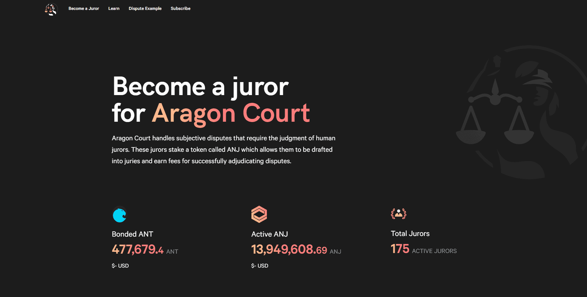 اول از همه، برای پیوستن به دادگاه آراگون، باید توکن های ANT را به توکن های ANJ (Aragon Network Justice) تبدیل کنید. در حال حاضر، برای هر توکن ANJ، باید در مجموع ۰,۰۱۴۸ ANT تبدیل کنید. همچنین میتوانید از توکنهای دیگری مانند DAI، ETH و USDC برای تبدیل به ANJ استفاده کنید. برای ورود به سیستم باید حداقل ۱۰.۰۰۰ ANJ در اختیار داشته باشید و سپس به وب سایت دادگاه آراگون بروید تا مواردی را که می توانید در سیستم شرکت کنید انتخاب کنید.